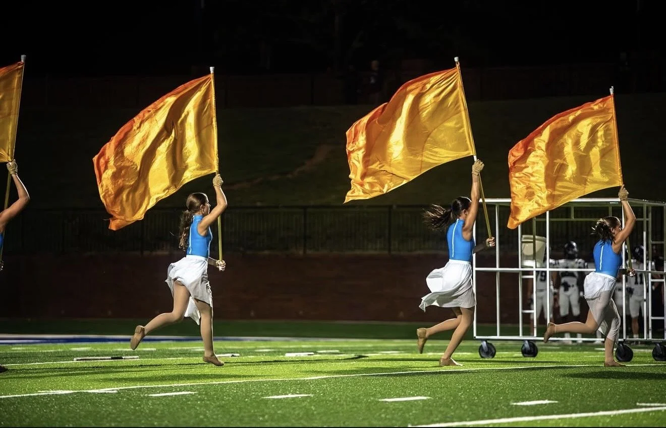 In 2025, designed custom flag patterns for the final movement of a color guard performance exploring themes of flight and weightlessness, culminating in the moment the performers reach the sun. The designs were created with motion in mind—using bold color, contrast, and flow to feel expansive and luminous as the flags moved across the field. Rather than static graphics, the flags functioned as part of a dynamic visual system, enhancing choreography and emotional impact. The final result created a sense of lift and arrival, visually reinforcing the show’s climactic ending.